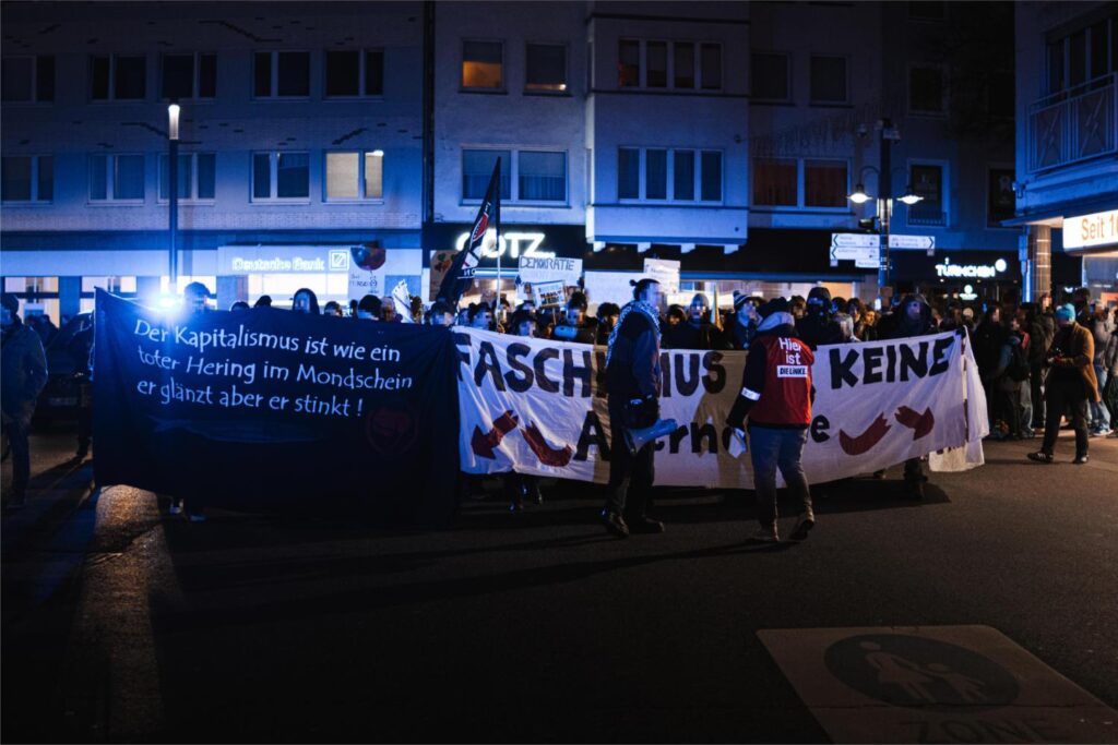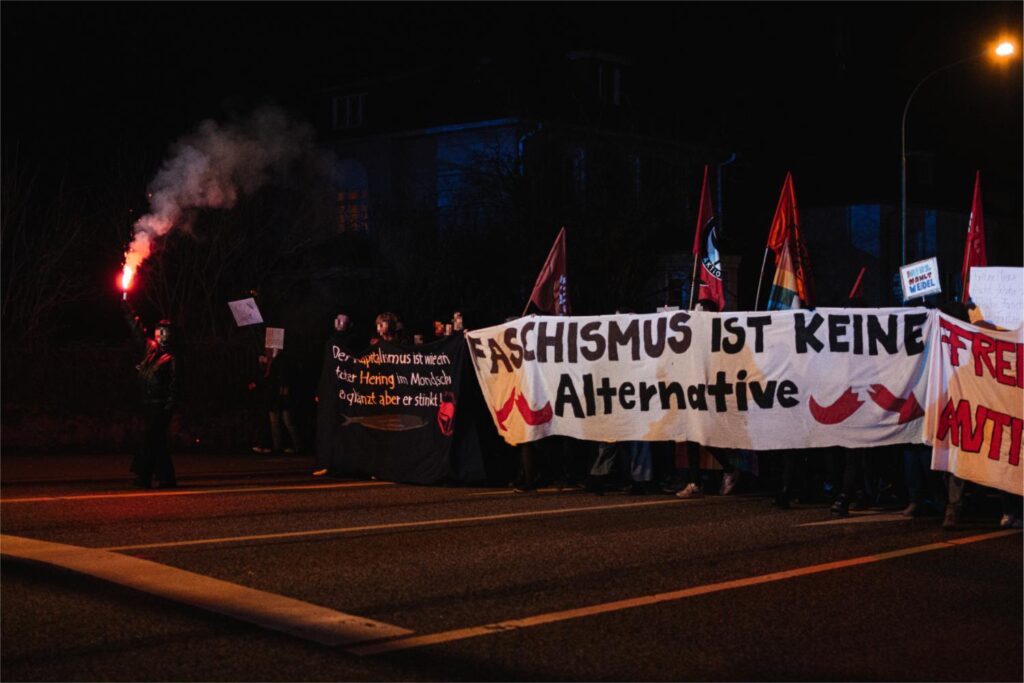 Gießen, 31. Januar 2025 – Nur Minuten nach dem Ende der Mahnwache „Kein Pakt mit Faschisten“ formieren sich mehrere Hundert Menschen am Kirchenplatz, um unter dem Motto „Nie wieder war gestern“ um gegen den politischen Dammbruch der CDU zu protestieren. Der Demonstrationszug setzte sich gegen 20 Uhr in Bewegung und führte durch die Innenstadt zum CDU-Kreisverband im Spenerweg.